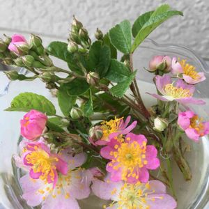 昨日の野ばら🌹 可愛いので今朝、挿し木にしてみました。 撮り直して再度で申し訳ありません。