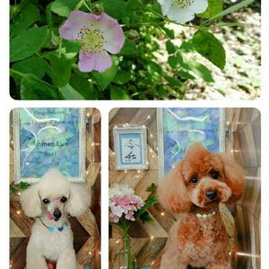 野バラ 同じツルの花で白と、ピンク。 🐩まるはペコの倍近く大きくなってます。