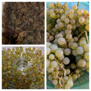 甘みの薄いナイアガラを今年も干しブドウにチェンジ 左上は半分に切って種を取り除いてからフードドライヤー60℃で15時間かな⁉️ 乾くとなんだか皮だけみたいな感じで次は軸から外した部分の穴を少し削って種を掻き出し同様に乾燥。途中何度も皿を入れ替えして満遍なく乾くように努力。今朝からは温度35℃に下げ風で乾くように。飴色になり、それでも半生タイプの柔らかいレーズンになりました。 ジベレリン2回で種無しになるんだけど今年は雨が邪魔して2回めが適期にできなかった😩 レーズンはカレーピラフに散らしたり、そのまま食べたり。 ちなみに外国では干しブドウは種ありが当たり前でイチジクのように種をジャリジャリ食べちゃうそう💦サルタナレーズンとかは最初から種無しなんでしょうね😃
