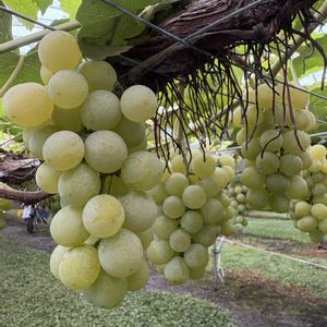 今年最後のシャインマスカット🍇 酷暑で心配していたけど、頑張って立派に成長してくれた。 今年のぶどうは、降雨不足で粒は小ぶりが多かったけど、全体的に味が濃くて甘い(*^^*) 明日で、販売も終了予定。 もう1日頑張ろう(๑•̀ㅂ•́)و✧
