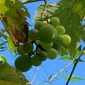こんにちは〜😄今年のブドウは長雨で味が薄いかと思って摘んで食べてみたらとっても甘かった❤️ 今日の仕事が終わってからか明日にでも収穫しようかな😆 今年はお隣さんとの境界のフェンスも使って栽培してみてるからおすそ分けしなきゃ🤣 喜んでくれるかなぁ?🤔