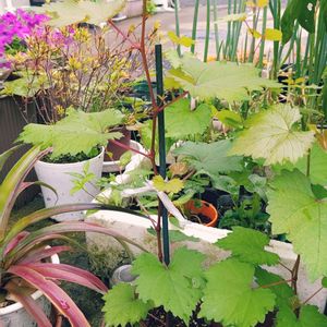 ぶどうの挿木が大きくなりました😁 こんなに育つなんてびっくりです! 他の挿木や種まきミニトマトとごちゃごちゃしてるけど💦 冬に移植できるかな?