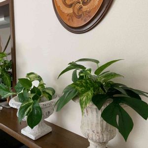 みなさんのpicを拝見してずっと欲しかったポトス エンジョイを手に入れました😆😆 葉っぱがちょっと傷んでるなあと迷いましたが、欲望に勝てず買ってしまいました😅 しばらくこのまま様子を見ようかな🥰