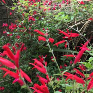 手前がパイナップルセージ、奥がチェリーセージ。チェリーセージとは10年のお付き合い。