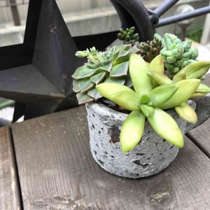 ちょっと元気のない部屋の中にいた多肉ちゃんを仕立て直しました(╹◡╹)カップの鉢もいい感じです(๑˃̵ᴗ˂̵)