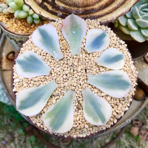 先日、我が家のルノーディーン 、、バラバラになりました_:(´ཀ`」 ∠): 葉挿し、1枚でもいいから成功しますように!💦