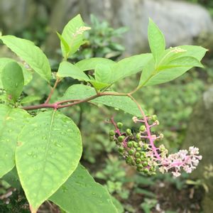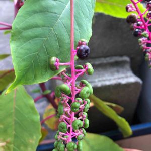 🌱庭の隅に生えてきた🌿 抜こうかどうか迷ってここまで大きくなるまでまったけど これはヨウシュヤマゴボウですよね❓ 鳥が運んで来たのでしょう