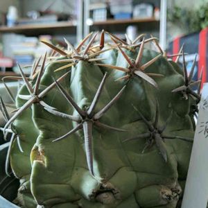 豪刺綾波。やや平べったいボールに太く力強いトゲを纏うパワフルなバレルカクタス(樽型サボテン)。馬を怪我で歩けなくするという「ホースクリップラー」の忌み名を持つ一方で、食べられる果実が甘くてキャンディの材料になったことから「キャンディカクタス」とも呼ばれるんだとか(一転してかわいい)。 https://pukubook.jp/detail/Homalocephala_texensis #ホマロケファラ #綾波 #ホマロケファラ綾波 #Homalocephala #Homalocephalatexensis #多肉 #多肉植物 #多肉図鑑 #succulents #pukubook