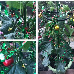 虫はキラキラが嫌いだと言う事で こんなキラキラを教えてもらいました🎄 きゅうり🥒の苗からは🍎は採れません❣️ 明日はもう少しゴージャスにしてみようかしら🤪😜🤪