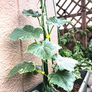 エムソン企画さんの極小キュウリ、プチキューを今年はじめて育てています😃大きくなっても2cm程度! 実が大きくなる前に、花のあまりの小ささにびっくり👀一般的なキュウリだと花径40-50mmというところですが、プチキューはほんの8mm程度!オオイヌノフグリの花くらい小さい🕵🏻♂️ 一株で最多200粒くらい実るとのことで、たくさんできたらピクルスにしたりしたいな〜 なお、サントリーさんの強健豊作は安定の順調っぷりです👏メネデール野菜肥料でグイグイ成長中!