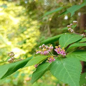 今日のお花 ムラサキシキブ 1⃣ 山の公園のムラサキシキブのお花 6月6日 2⃣ こんなに大きな木ですが実は数えるほどしかなりません。 3⃣4⃣ 近くの山のムラサキシキブの実 11月17日