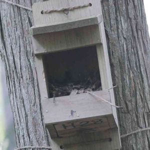 「抱卵中」 この前アップしたお気に入りの 森で、随分オープンな巣箱 だな~とレンズ向けて見たら 居ました。 絶賛抱卵中の親鳥さん。 分かりにくいけど拡大すると 真ん中ちょい下にカメラ目線 で抱卵してました。 多分コサメビタキだと 面白います。