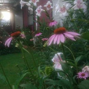 今は…💠 エキナセアが次々と咲きだしました(*´∇`*) バラ&篭口→百合→エキナセアと咲き継ぎます~🌹🔔⚜️💠 この場所お気に入りなんです(*´∀`)♪