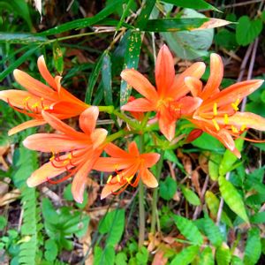今日のお花 キツネノカミソリ ヒガンバナ科 ヒガンバナ属 春出た葉は、夏には枯れその後花茎が出て花が咲く。 名前の由来、花の色が狐を連想させることと、葉の形がカミソリに似ているからという説がある。 オレンジ色のお花、木々の間にひっそりと咲いていました🧡