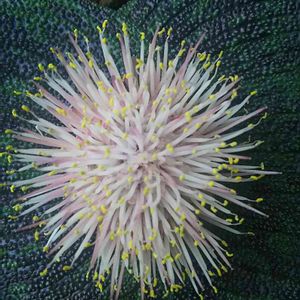 「マッソニア・デプレッサの水は粘液だった!」 昨日数時間日光に当てたら、今朝もう開花👍 と言ってもこのとおり花弁があるのか無いのかオシベしか目立たない地味~なお花🌼 あら、真ん中が黒くてキラキラしてる~✴ 老眼鏡を外してマジマジ見ると、水が溜まっているわ~ 水遣りの時は直接本体にはかけないで、土だけにかけてるから、この水はこのコが自分で吸い上げた水なのね! どれ、ちょっと味見をしてみましょ🎵 (甘いんかな?蜜で虫を誘ってるんかな?冬の虫ってなに?) 綿棒でツンツン🎵 トロ~ン…そんな~っ、想定外~💦 ちなみに味はしませんでした😅 追記 ネットでこの花の蜜をネズミが吸いに来て、その時受粉させるらしいとありました…そうだったの…🐭さんを誘ってたの…