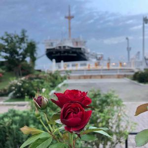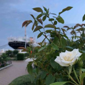 横浜山下公園8/12 その2 薔薇と氷川丸^_^ 今日は、大道芸近くの 夕方から日陰になるベンチで ぼーっと海を眺めていたら 大桟橋から出航の船の汽笛が ぼーっと 3回^_^ あっ 一緒と思ったのは、 私だけですね〜^_^