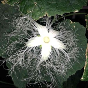 駐車場のフェンスに咲いていました やけに涼しげに咲いていましたが 名前が知りたいです どなたかご存知の方がおられましたら 教えてください Miyukiさんありがとうございます カラスウリと教えて頂きました^_^