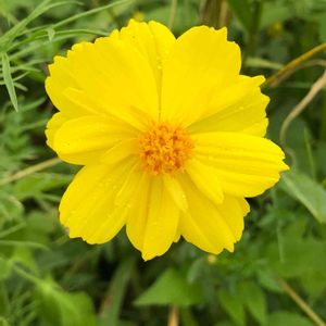 キバナコスモス^_^ 八重じゃーなく、二重?三重^_^ 今日の雨に濡れて、 しっとり、つやつやが素敵〜^_^ アップで見てあげて〜^_^