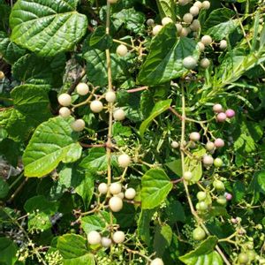 ノブドウ🍇ヤマブドウ どっちかな🌿 🍃葉がわかるように再度投稿😅 二つが絡まってました😀