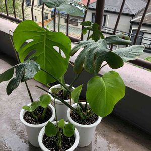 我が家のモンちゃんたち^_^ 切れ目が5つの葉っぱ出ました^_^ 別の鉢では、切れ目2の葉っぱも 出ました^_^