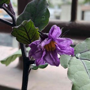 ナスの花^_^ 記念すべき一輪目が咲きました^_^ ナス色^_^綺麗^_^