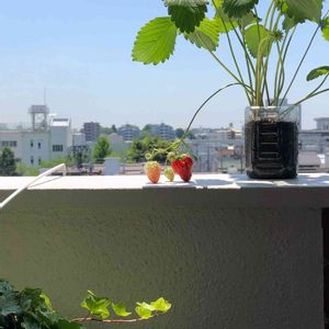 我が家のイチゴ🍓ちゃん^_^ 可愛い〜^_^ 昨年ランナー出すぎて増え過ぎ これ以上は、スペース取るのが 無理って事で、 急遽これで育てました^_^ よくここまで頑張ったね〜^_^