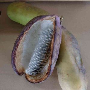 小さい頃、よく食べた👍 今は、食べないかな。 あけび棚に沢山 実がなっていました。 ♪───O(≧∇≦)O────♪