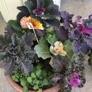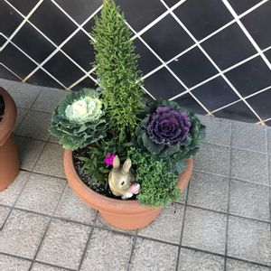 さっきホムセンの見切り品コーナーで可愛い寄せ植え見つけて購入してきました(//∇//)ビックリの800円‼️シクラメンやカルーナ?や花キャベツにビオラらしき物とあと奥のグリーンのは何だろ?わかんないけど 可愛い💕良いお買い物したー🎵