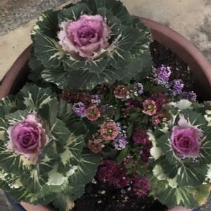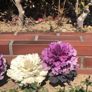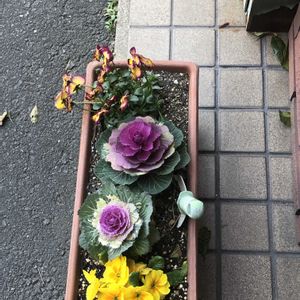 🌸葉ボタン 花キャベツ🌸 近所の花壇にて。 子供の頃、これがキャベツになると 思っていた私です😆 でもあながち間違いではなく、 アブラナ科でキャベツの仲間だそう。 2020年3月撮影