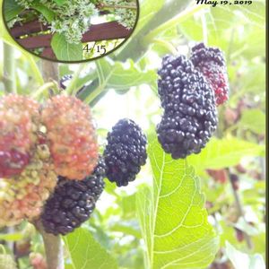 桑の実が熟れて来ました ビタミン類 カリウム 鉄分など豊富な栄養素のある実は毎日黒く熟れたのを食べてます ジャムにするより生の桑の実が好きです ビタミン類 亜鉛 鉄分 食物繊維等健康成分一杯の葉っぱは蒸して干してパリパリになったらお茶にして飲もうと思ってます