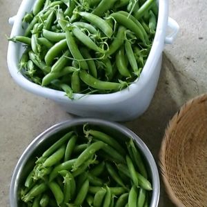 夏野菜前にえんどう豆の収穫が本格的に始まりました。 ツタンカーメンなどの実採りえんどうはもう少しかかります。