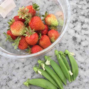 北海道🐎 今日の収穫👨🌾 いちご🍓15個累計40個。 スナップえんどう。 今日の収穫は義父母におすそ分け👍