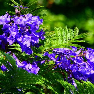ジャカランダ 和名 シウンボク(紫雲木) 桜並木のようにジャカランダが咲いている所を見てみたいものです。 東京都薬用植物園温室