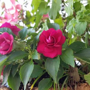 バラ咲きインパチェンス カリフォルニアローズ フィエスタグランデ まだ植えたばかりで小さいです❇️ Photo by daughter🌼