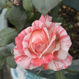 葉っぱの陰に隠れていて気づかないうちに咲いていたヴァグレット。 耐陰性、耐寒性、黒点病、うどんこ病、全てにおいて弱々の河本ローズ。 鉢栽培を推奨されてますが大胆に地植えしています。 ワイルド〜😂 濃厚なダマスクの強香🌹