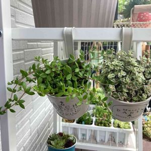 5/4のpicの時にプレステラに植えた、ご近所から連れて帰ってきたツルマンネングサ。 だいぶ伸びて垂れてきて、周囲に引っかかるようになったので、ハンギング鉢に植えることにしました。 全部植え替えたわけではなく、伸びた部分だけカットしてこちらに挿しました。 プレステラに残したほうは、お庭改造ができたら地植えしたいと思ってます。 それまでにもまた伸びそうですが😅 お隣はやっぱり垂れがちなリトルミッシー、こちらもハンギングしてみました。 まだ挿したばかりなので垂れてませんが…