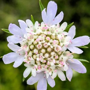 今週の裏庭の青いコたち.°ஐ.*𖤣𖥧𖥣。𖥧𖧧❁⃘*.゚ スカビオサドラムスティック❁⃘*.゚ 個性的な花後 なのにこんな可愛らしいお花とはꕀ⋆(◍︎´꒳`◍︎) 🏷️美しく青きドヨウ