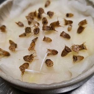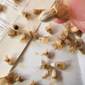 スカビオサ ドラムスティックの発芽実験🧪 左: ヒラヒラスカートを取って殻の入り口を軽く開いて蒔いた今年採取の種 中: 硬い殻を全て取って米粒みたいな中身だけにした今年採取の種 右:同じく中身だけにした去年採取の種 中身、出さなくてよかったんだな… その後、殻をとらずに去年の種を蒔いてみましたが、芽は出ませんでした。 メモ✍️今年の種を殻を取らずに蒔く❗️