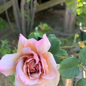 おはようございます☀️😃❗ 薔薇 グレイパール** 昨日夕方固い蕾だったのに もう開いてしまってる👀 これから柔らかなピンクグレーに変わるけど… 夕方には散り始めてるかな😅 あっという間に咲いて散っていく薔薇たちです🌹