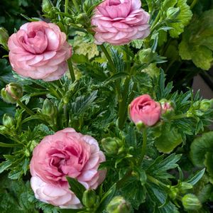 ラナンキュラスラックスが咲き始めました✨ 蕾が見えてから寒さが戻ってきたので、 咲き始めるまでが長かったです😂 今週は突然の雷雨に雹、連日の強風で 軒下に避難させていました💦 写真には撮りやすかったのでそのまま📸 ①サティロス/ニノス/ハデス/ジュピター/ ランドセルシリーズ イパリオン/モノケロス ②第一号はミノアンでした💛✨ 昨年よりも花数は増えたけど小ぶりかな… 花束みたいに咲いてます💐 ③エリス 3年目のお花です🧡 いちばん好きなお色です💕 ④ヘラ/ヘレン/グレーシス 2年目の3姉妹💖 ピンクのグラデーションにグレーシスの白が美しい✨ ⑤キュベレー 夕方のお庭で一際綺麗に見える(と思ってる) やわらかいオレンジ🧡 優しい色合いがお気に入り🥰 今シーズンはニノスをお迎えしました🤍 花つき株が出始めるとソワソワしてたけど 今あるお花が咲いてくれると、ボリュームアップした姿に満足しています😍 まだ蕾の子と咲き始めの子たちがいるので 毎日楽しみにしています🎶 ただ…明日は真夏日予報☀😣💦 夜まだ冷え込む日もあったから お花がビックリしないか心配です😥