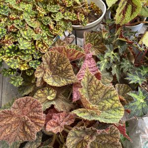 ベゴニア・レックス系が秋色に。 色も形も個性的、葉の質感とグラデーションが好きです。🍁