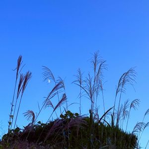 今日は暖かな秋の一日でした。 夕方の散歩時に見上げた空に月🌙 ススキが微風に揺れて秋を感じました。 1️⃣月とススキ🌙 2️⃣クロホウズキ 3️⃣ベコニア💕 今日もお疲れ様でした。