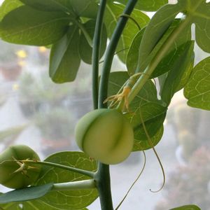 またまたアデニアグラウカ種鞘😅 毎日見るたびデカくなってるので😅 🟢径 8mm🙆 2枚目〜🌵これでこのカゴ🌼7株目 先程🖌️こちょこちょ 最初の🖌️二株🌵🌵は失敗、花ガラ落ちる。 第2陣🌵🌵は結実したかも?😔 ☁☁☁🌂