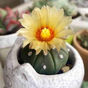 これが 一つ前の投稿でお話した くるみガーデンの astrophytumちゃんのお花です🌼💛🧡 とっても大きなお花を咲かせてくれます✨✨ どの子もそれぞれ、素敵な模様をしていてステキでしょ✨