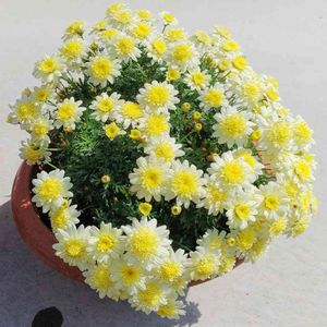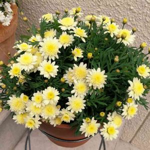 なつ子さんから頂いた大きめのリメ鉢に ボンザマーガレット レモンイエローを。 なかなかうまく咲かなかったけど、ようやくツボミが上がってきました。 モリモリ咲くといいな☺️