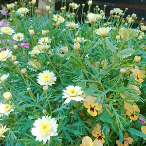 今日も朝からお天気☀️で気持ちいいです サントリーさんの🌼ボンザマーガレット🌼 🌼レモンイエロー🍋オペラ咲き🌼 GS初めて是非迎えたいと思ったお花です🌼 でも田舎なのでサントリーさんの苗になかなか出会えなくて先日偶然に出会えました😁 それもこのレモンイエロー🍋は1株だけ残っていました😅 何もしなくても春にはこんもり咲くらしいので 私にピッタリ😅とっても楽しみです🌼