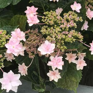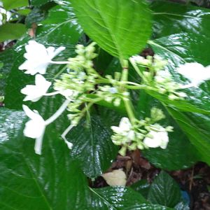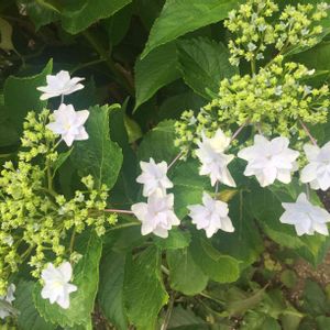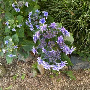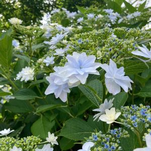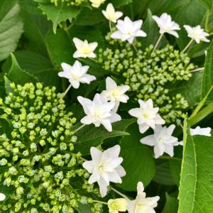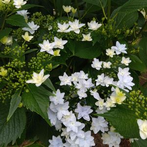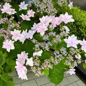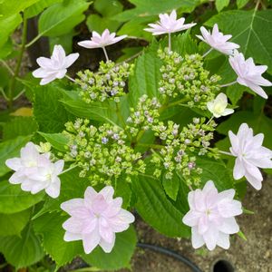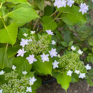 スミダノハナビ(墨田の花火) アジサイ科アジサイ属の額紫陽花 別名「ハナビアジサイ(花火アジサイ)」 花言葉「クールな美しさ」 昨年、挿し木したのが咲き始めました🤗 車庫にて 23.05.31