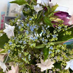 遅くに失礼します…🙇🏻♀️ 日付が変わってしまいました〜 昨日の今日のお花【アジサイ】で•*¨*•.¸¸♬︎ 学生証がある私は大学生料金で上野の国立博物館で今日で終わりになる大河ドラマの『蔦屋重三郎展』を見に行って来ました〜 1️⃣我が家の【スミダノハナビ🤍】を添えて… 2️⃣【アナベル】を添えて… 3️⃣【ガクアジサイ】を添えて… 4️⃣【カシワバアジサイ】を添えて…