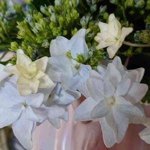 あじさいの咲く季節になりましたね。こちらは手前の花がぼんやりした、スミダノハナビです。