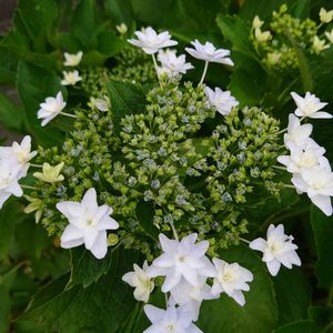 こんにちは☔️ 低気圧🌀絶不調へ⤵️⤵️😥 我が家の【ガクアジサイ🤍スミダノハナビ】の真花も咲きました♪ 綺麗です😍 低気圧🌀に癒やしてくれる花たち…(୨୧•͈ᴗ•͈)◞ᵗʱᵃᵑᵏઽ❤⃛🥲